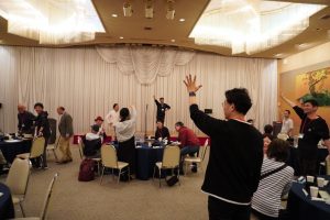 ↑↑昼食は静内エクリプスホテルにて。高橋ファーム様より生産・南関東クラシック三冠勝ち馬ミックファイア号のグッズのプレゼントがあり、急遽開催されたじゃんけん大会で、大盛り上がり。