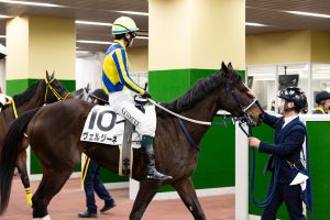 実際、調教が進んでいく中でも、その通りに、走りに前向きで、それでいてクセのないタイプとの評価。また、普段は馬房で人に甘えるなど、かわいらしい一面を見せるようですが、騎乗するとスイッチが入るようで、切り替え上手なところも、優等生さを彷彿とさせます。
