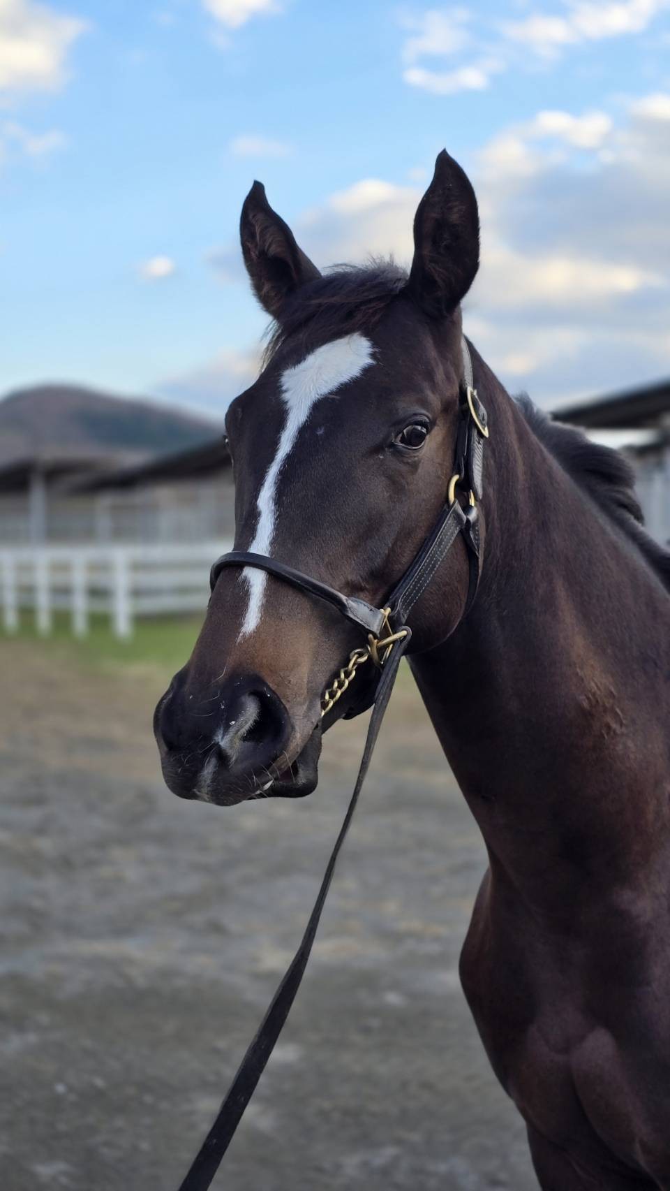 「本馬もこの一週間変わらず順調にトレーニング出来ています。今日(取材日)はローテーション的に軽めのメニューでしたが、普段はフラットコースや坂路を使いながらしっかり乗り込めています。今のところ気性面は落ち着いていますね。普段もすごく穏やかな表情をしていますし、調教に対して必要以上にテンションが上がることもありません。まずは体力をしっかりつけて、少しでも上のステージにいけるよう育てていきたいと思います。」(牧場関係者)