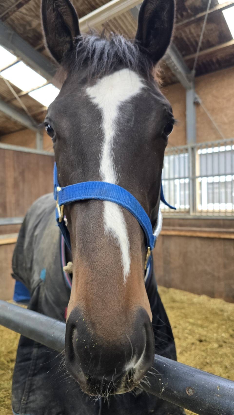 「中間も順調に乗り込んでいましたが、先日から鬣のところを擦ってしまったのか傷があり、触れると嫌がるため、今は騎乗を控えています。すでに回復はしてきていますが、嫌なイメージは残したくないので、しっかり治ってから騎乗を再開していきたいと思います。」(牧場関係者)
