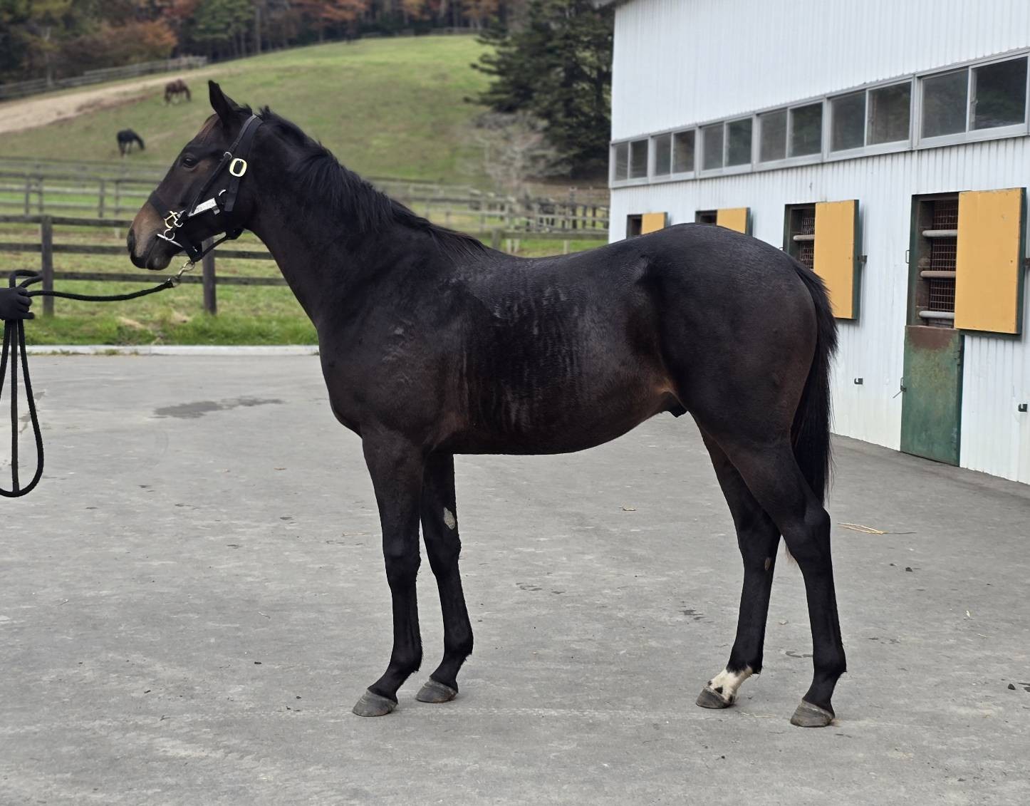 「コンサイナー馬としてお預かりしていましたので、こちらの環境には慣れており、性格もある程度把握済み。他馬よりスムーズに馴致を進めることが出来ましたね。サマーセールの時は明らかに幼い体型をしていましたが、馴致を終えたくらいから見た目がどんどん変わってきていますね。数字的にはさほど変わりないものの、変化できる馬は成長しますので、本馬はこれからが楽しみですよ。」(牧場関係者)