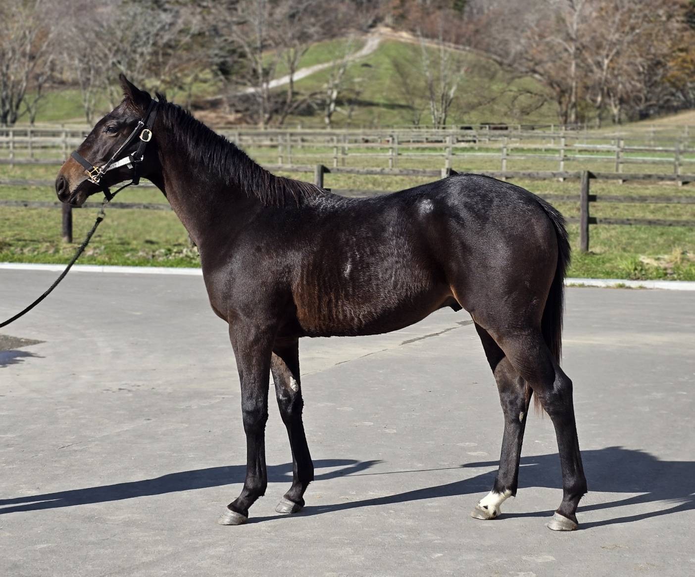 「本馬も先日から乗り運動を再開しました。現在は牧場内にある500mトラックコースでじっくりとしたペースで立ち上げている段階です。一息入れたことでフレッシュな状態で再開出来ています。まだ幼い体型をしていますが、馬体重は徐々に増えてきています。これからどんどん良くなってきそうな雰囲気がありますね。今は基礎体力を強化する時期ですので、じっくりと進めています。乗った感触も悪くなく、しっかり体を作って、上手く成長させていきたいと思います。」(牧場関係者)