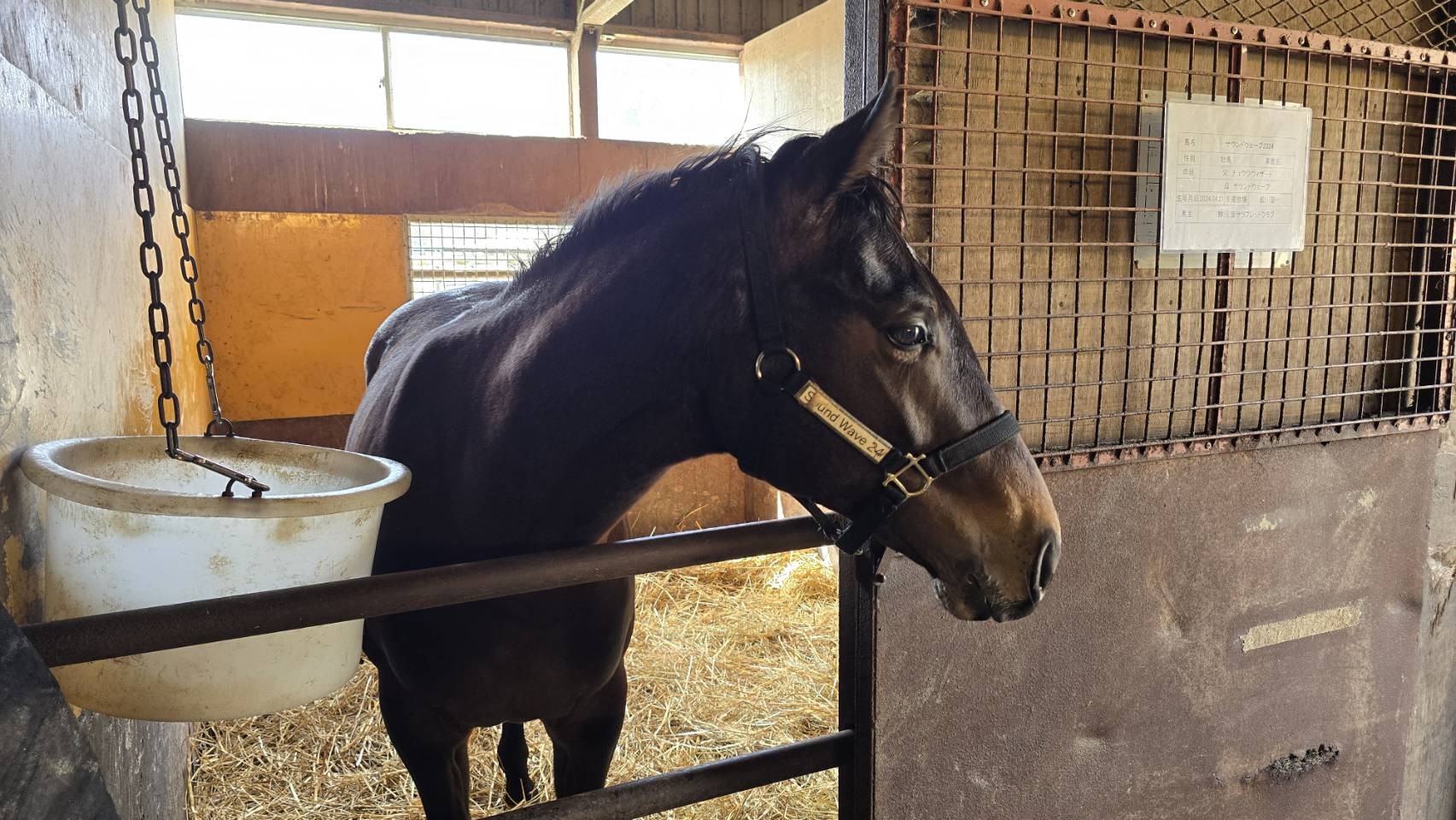 「こちらも基本メニューは前回と変わらず、牧場内のトラックコースとBTCの坂路コースを使ってしっかり乗り込んでいます。坂路では徐々にペースを上げており、今はハロン15~16秒くらいで登坂しています。現時点では脚元含め、不安はありませんね。運動量も徐々に増えていますけど、疲れも見せず、毎日元気があって煩いくらいです。でもこれくらい元気があった方がトレーニングもしやすいですから良いことだと思います。」(牧場関係者)