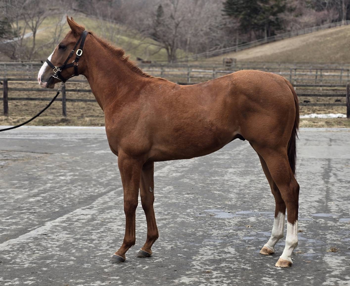 スターリーオレンジの最後の産駒になります。これまで活躍馬を送り出せなかった理由として思い当たることが一つあり、常に骨格的な欠点が同じところに出ていました。それがブレーキとなりスピードを殺しているのではないかと考えています。しかし、ようやく最後になってその欠点のない産駒ができました。本馬については骨格的に非の打ち所がなく、大きなトモから繰り出されるエネルギーを最大に発揮できます。イメージとしては同じ父のダズリングダンスのように成長すると思われます。もちろん競走能力も引けを取らない馬になるだろうと期待しています。