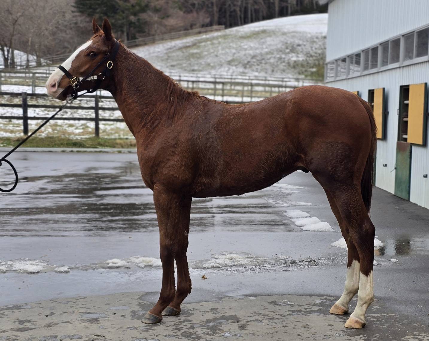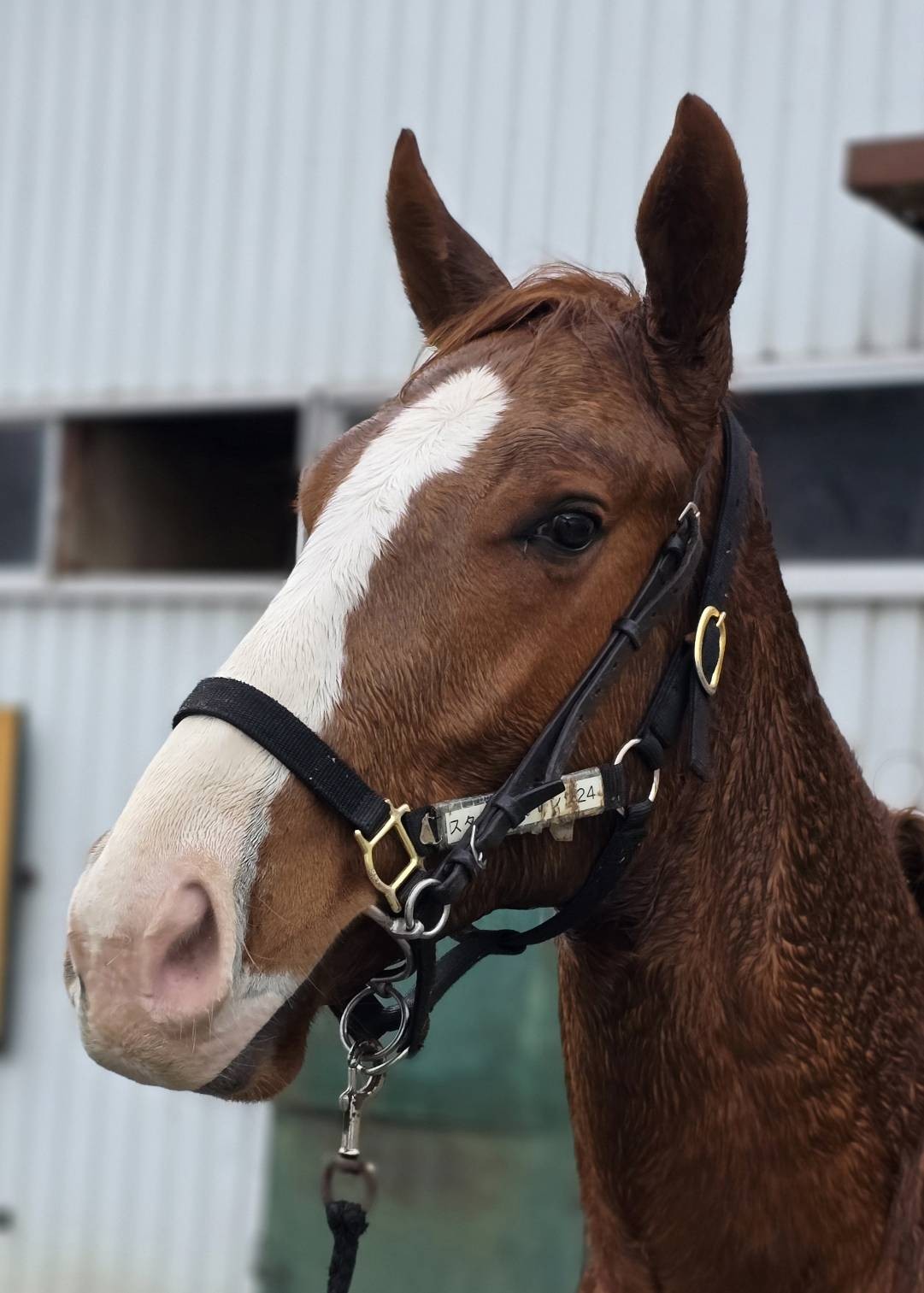 スターリーオレンジの最後の産駒になります。これまで活躍馬を送り出せなかった理由として思い当たることが一つあり、常に骨格的な欠点が同じところに出ていました。それがブレーキとなりスピードを殺しているのではないかと考えています。しかし、ようやく最後になってその欠点のない産駒ができました。本馬については骨格的に非の打ち所がなく、大きなトモから繰り出されるエネルギーを最大に発揮できます。イメージとしては同じ父のダズリングダンスのように成長すると思われます。もちろん競走能力も引けを取らない馬になるだろうと期待しています。