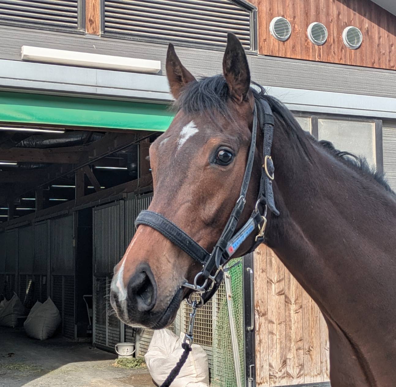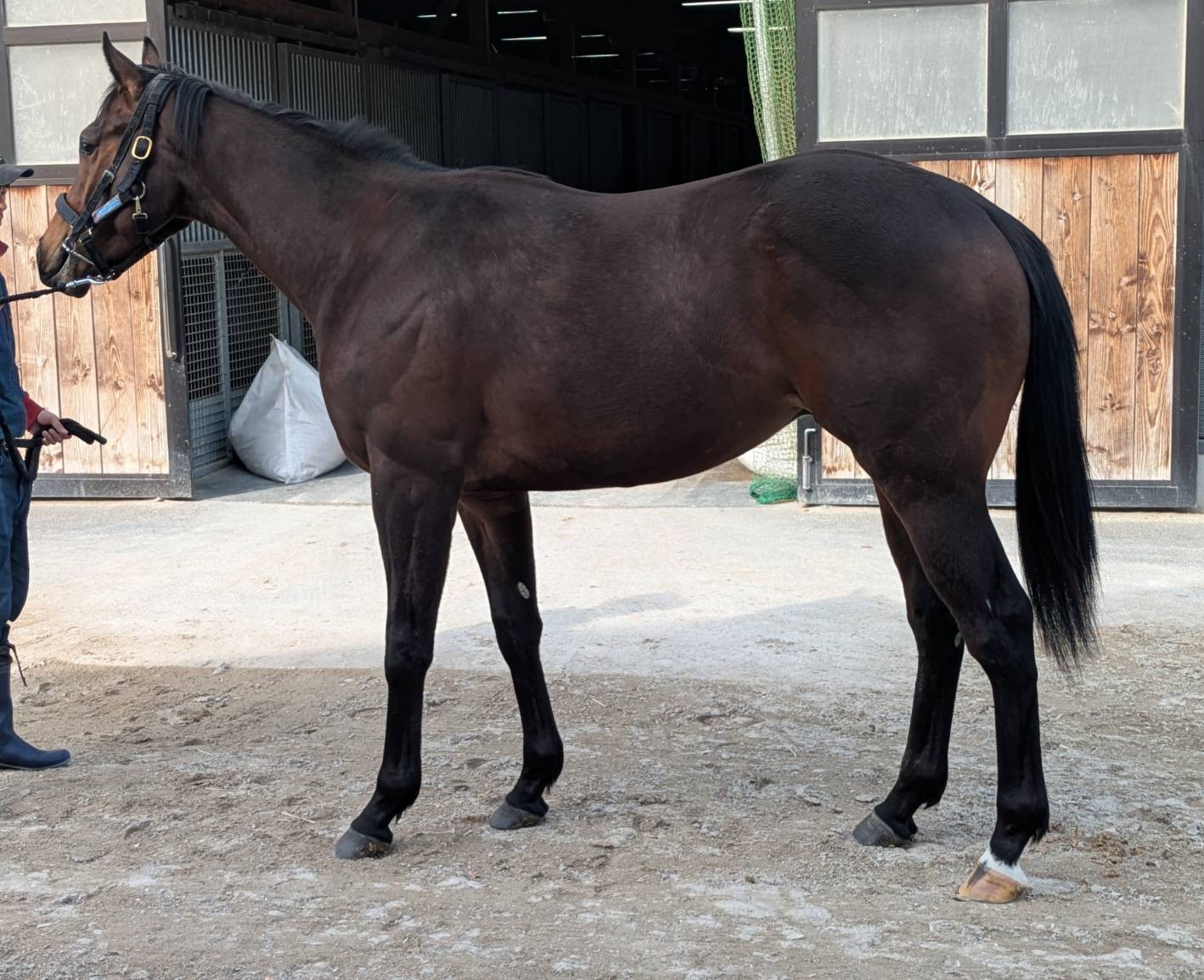「こちらに到着時の馬体重は457㌔でした。輸送熱もそれほど気にならず、着いたのは朝ですが、午後には既に体温が落ち着いていました。多少冬毛が出ていますけど、飼い葉もきちんと食べてくれますから、コンディションは良いはずです。しばらくはウォーキングマシンのみで調整し、週末あたりから乗り出す予定にしています。」