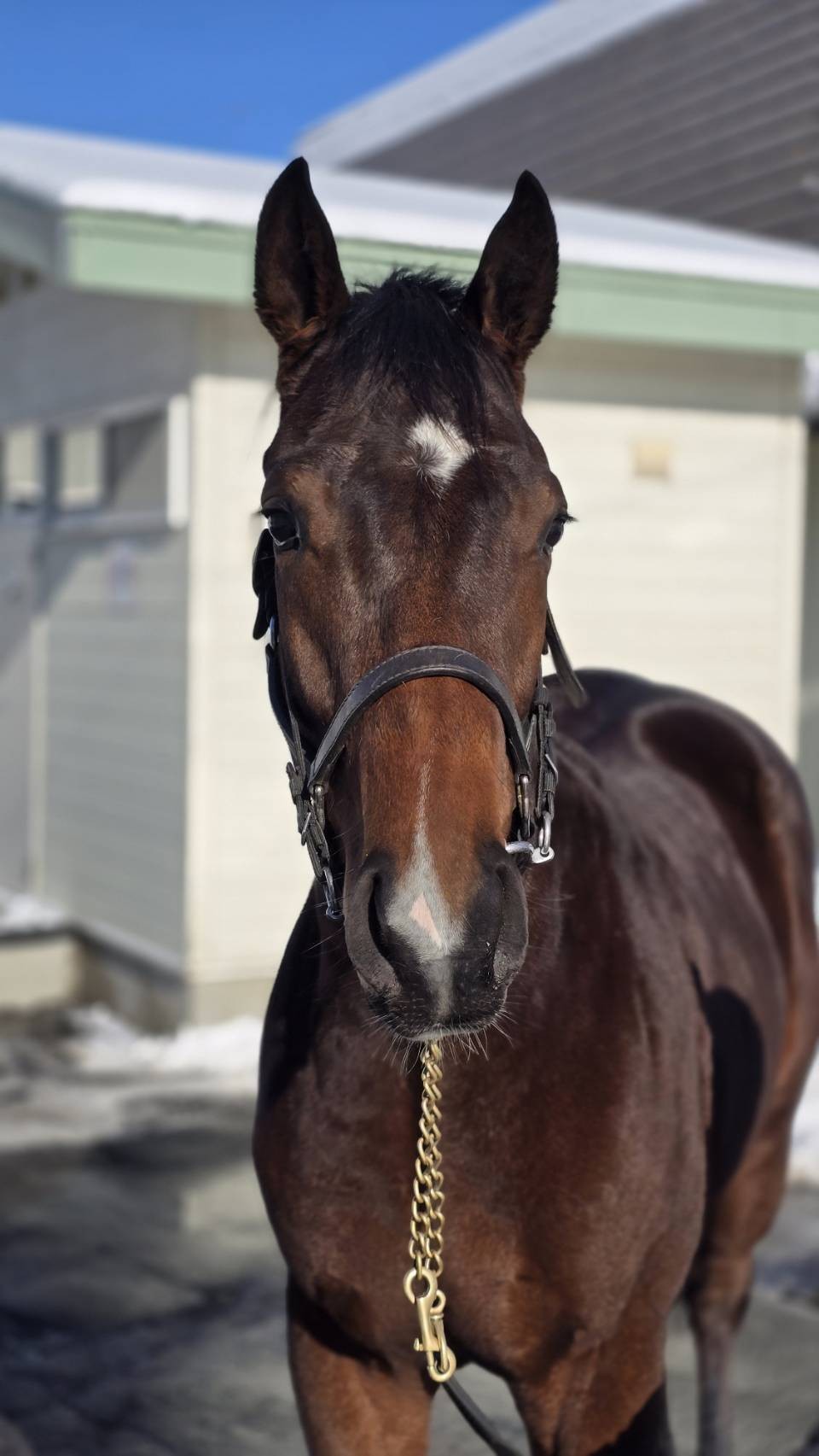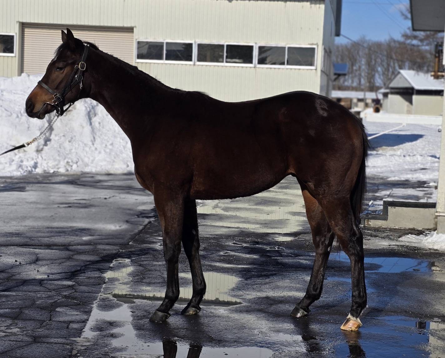 「今週も順調に乗り込んでいます。坂路では少しずつペースを上げている段階で、ラストは16秒前後で登坂させています。予定では15秒くらいまで進めるはずでしたが、雪の影響などで多少予定よりは進みが遅くなってしまいました。ただ、大きく後れを取ったわけではありませんので、この先も少しずつステップアップしていきたいと思います。」(牧場関係者)
