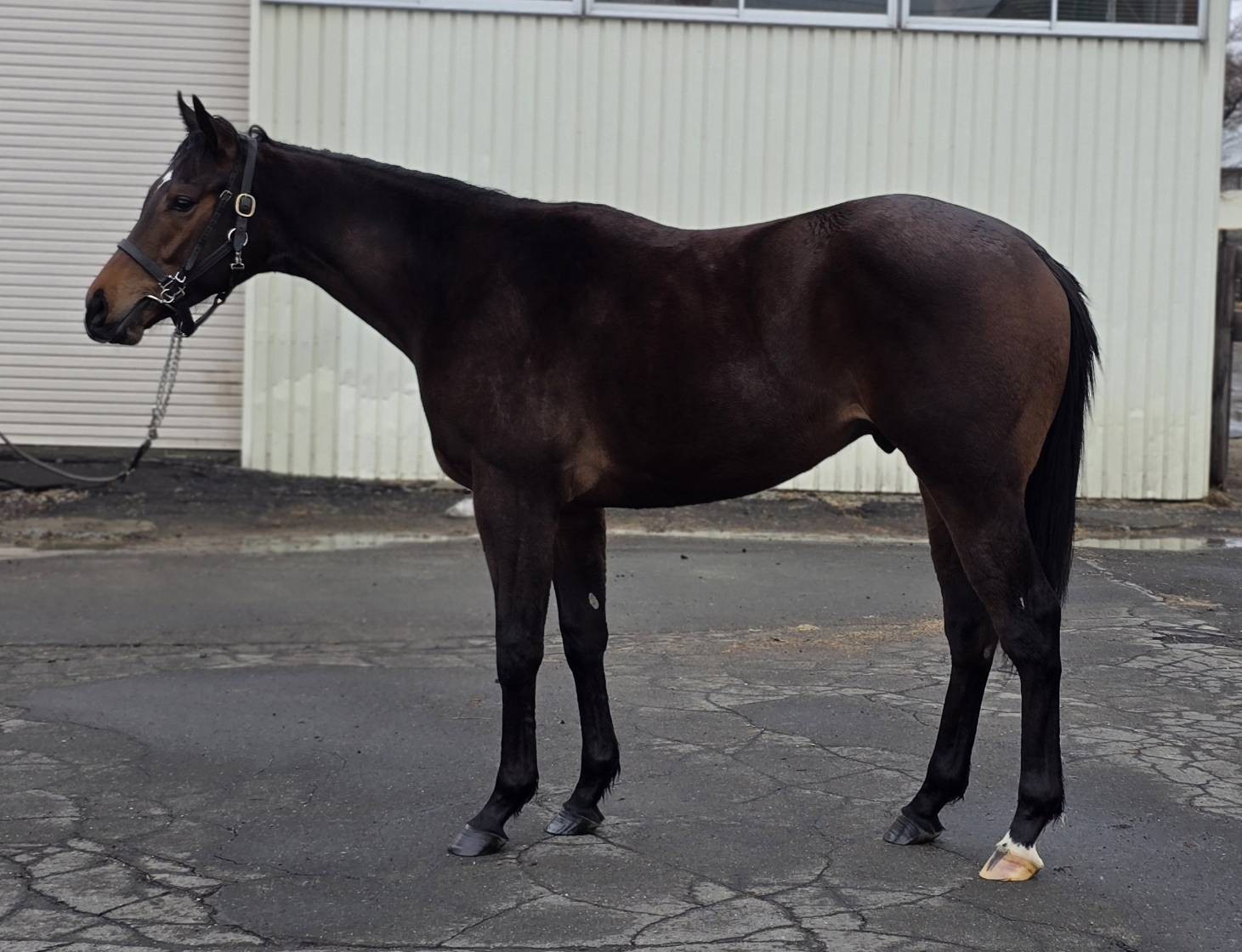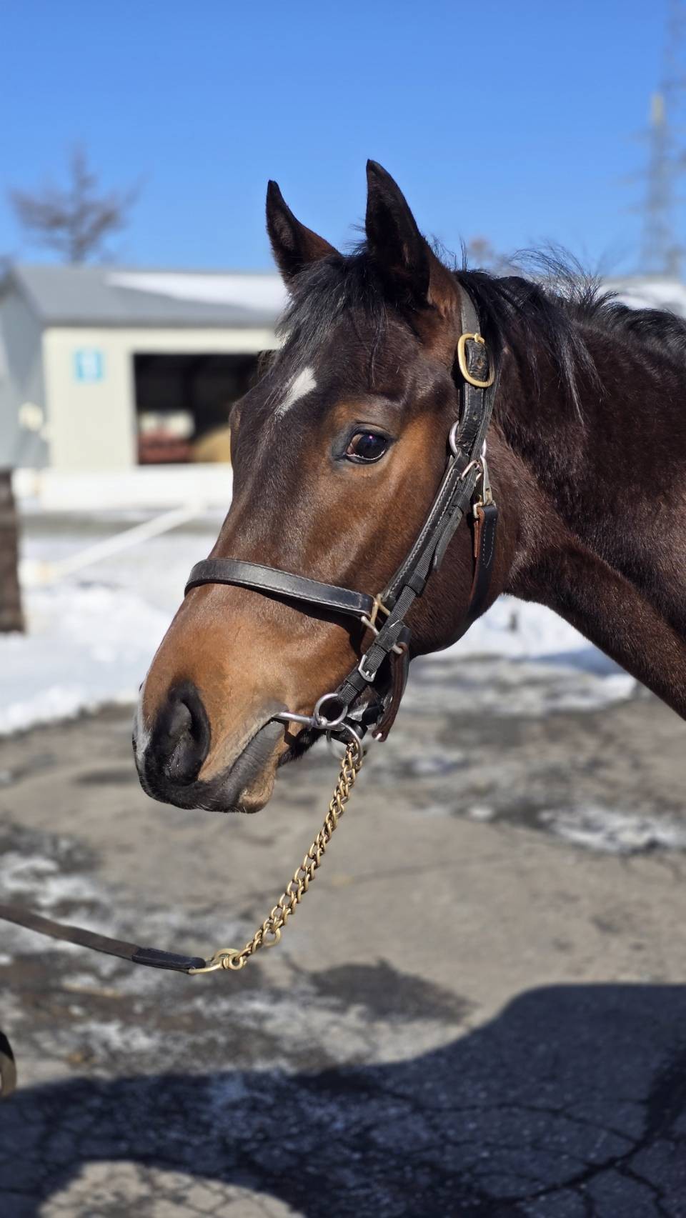 「日々の調教は順調ですね。今日(取材日)も坂路に入って、ラスト2ハロンを15秒前後のペースで登坂しています。動けることは動けるのですが、馬自身が走っている途中で気を抜くなど、ちょっとズルい性格をしていますね。走っている際、楽することに慣れさせるといけませんから、今はビシバシ追える乗り役に乗ってもらって教育しています。苦しい時期であると思いますが、もうひと踏ん張りしてもらいます。」(牧場関係者)