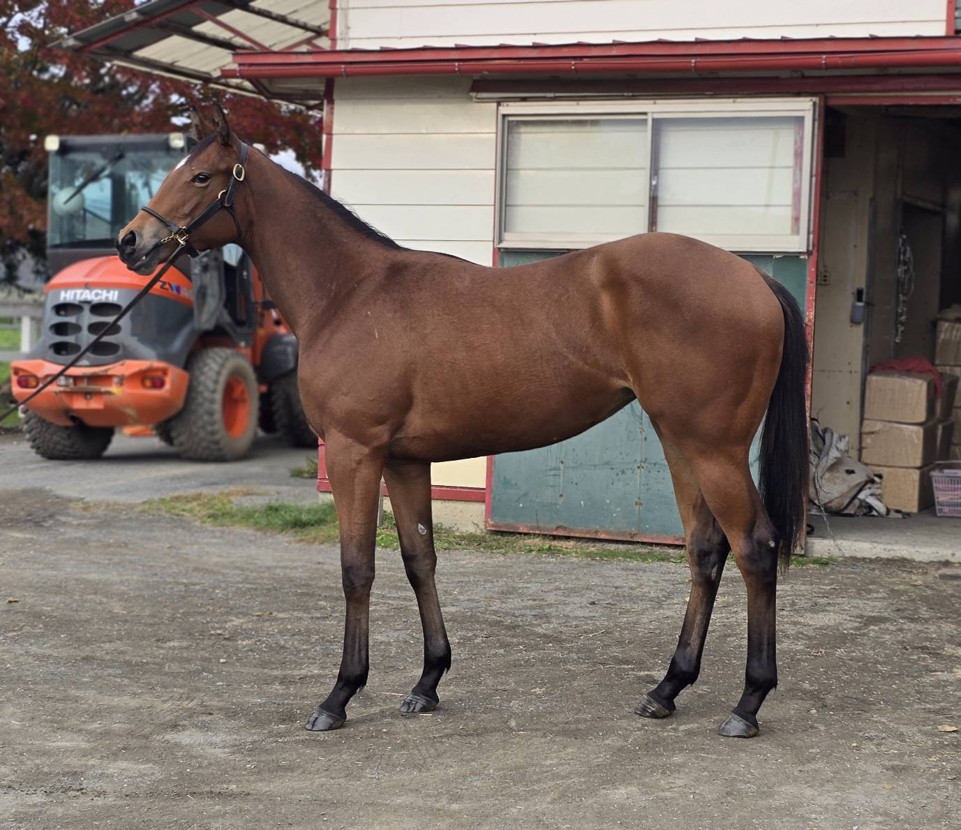 「入場してからここまで問題らしい問題はありませんね。馴致もスムーズに進めることが出来ています。この時期は色々と経験させる時期ですので、本馬も角馬場から始まって、坂路コースや直線ダートコースに入れて経験を積んでいる段階。一通り経験させることが出来ています。現時点では幼い部分はもちろんありますが、素直に指示に従ってくれている方ですね。慣れていない場所で色々経験させますので、見えないストレスなど溜まりやすいですから、一息入れながら少しずつ進めていきたいと思います。」(牧場関係者)