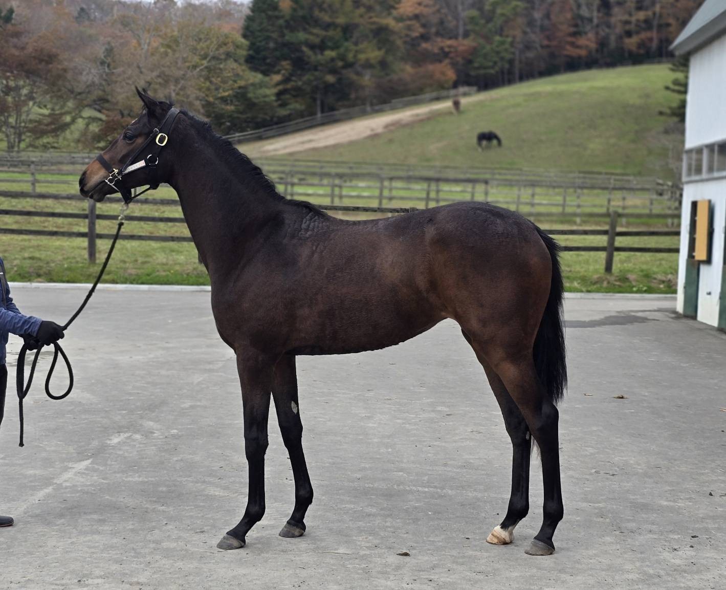 「サマーセール後にこちらに移動してきました。当初は少しピリピリしているところを見せていましたが、少しずつ慣れてきましたね。初期馴致はすでに終えており、牧場内の500mトラックコースで乗り慣らしをしている段階です。先日、他と同じく整歯を行いましたので、この一週間は楽をさせています。本馬は線が細いタイプのため、他の馬たちより少し長く休養させることも考えています。現時点ではまだ分かりませんけど、少し時間をかけて育てた方がいいタイプかもしれませんね。今後進めていきながら、変化などを伝えていきたいと思います。」(牧場関係者)