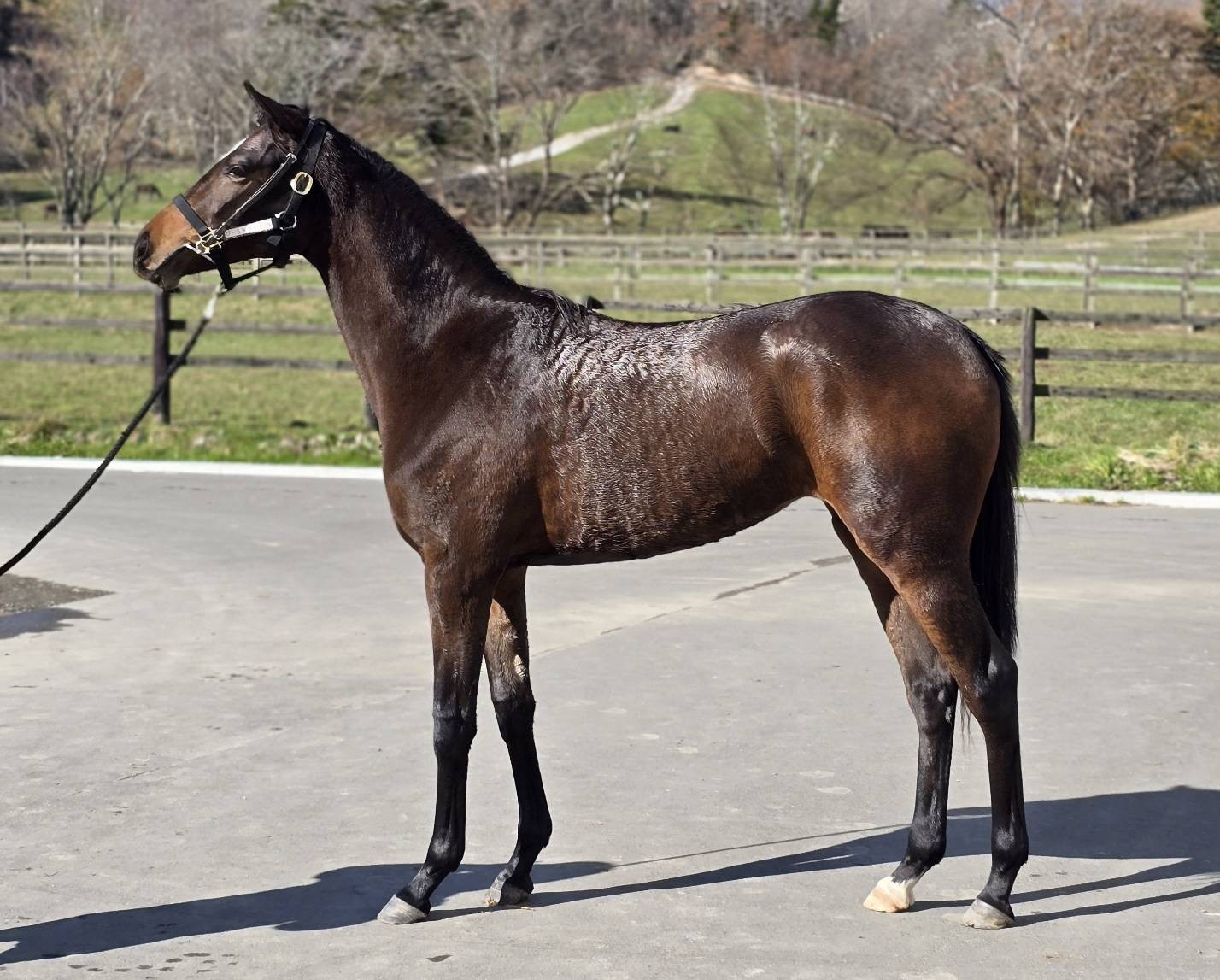 京サラでは牝馬が不人気です。牡馬のほうが長く活躍し、期待できる獲得賞金も大きくなるので、採算を考えれば牡馬を買うべきです。ですから、サマーセールではほとんど牝馬を競っていません。売れないものをわざわざ仕入れる必要はありませんから。しかし芝にしか対応できそうにない牝馬については、超安価で落札するチャンスがあります。本馬は脚がすらりと長く、スマートな筋肉を纏い、さらに美人顔。芝を走りそうな雰囲気の良馬です。価格が安いので、できるだけ2歳の早期から使い出して、能力的に足りないようであれば、早く見切る方針で考えています。
