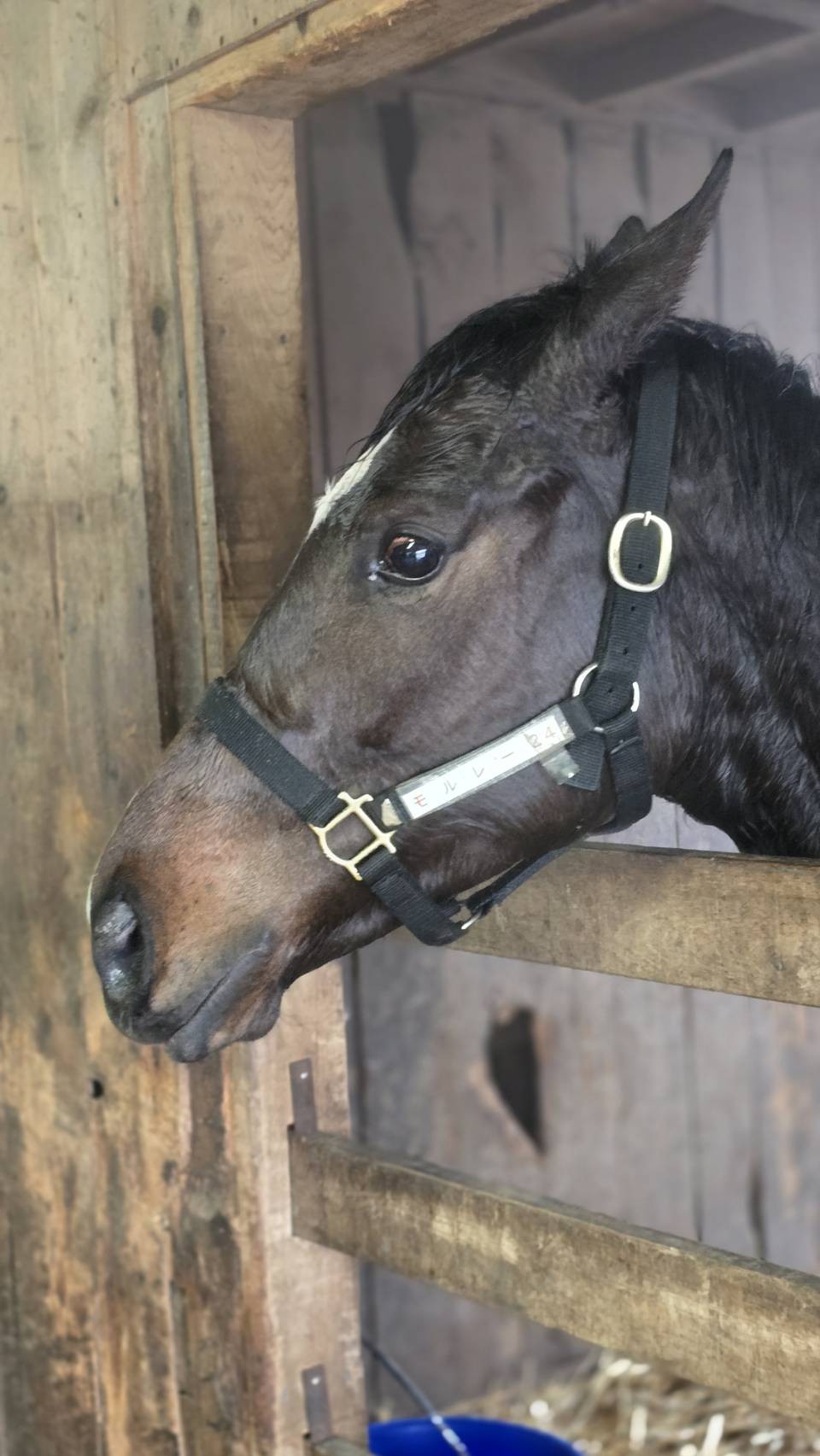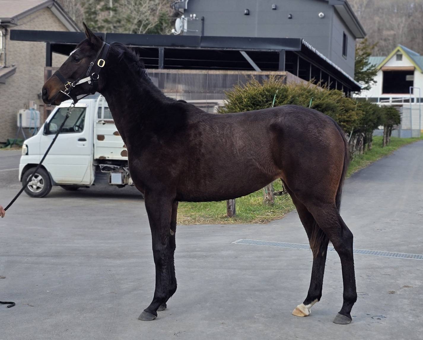 母モルレーは牝系が良いので購入しました。牝系の良い馬はミトコンドリア(エネルギーを産生する細胞内小器官)の質が良い可能性が高いので、本馬の競走成績以上の繁殖成績を出す場合があります。父アメリカンペイトリオットは大柄なので、小さめの母の初仔にはちょうど良いかと配合しました。本馬は、やはり初仔らしく骨格はややコンパクトです。しかし筋肉は父の産駒らしく、がっちりとしたものを身に纏っており、見映えはします。成長の過程を見ていると早期からレースに使っていけそうな雰囲気がありますので、来夏からの活躍を期待しています。